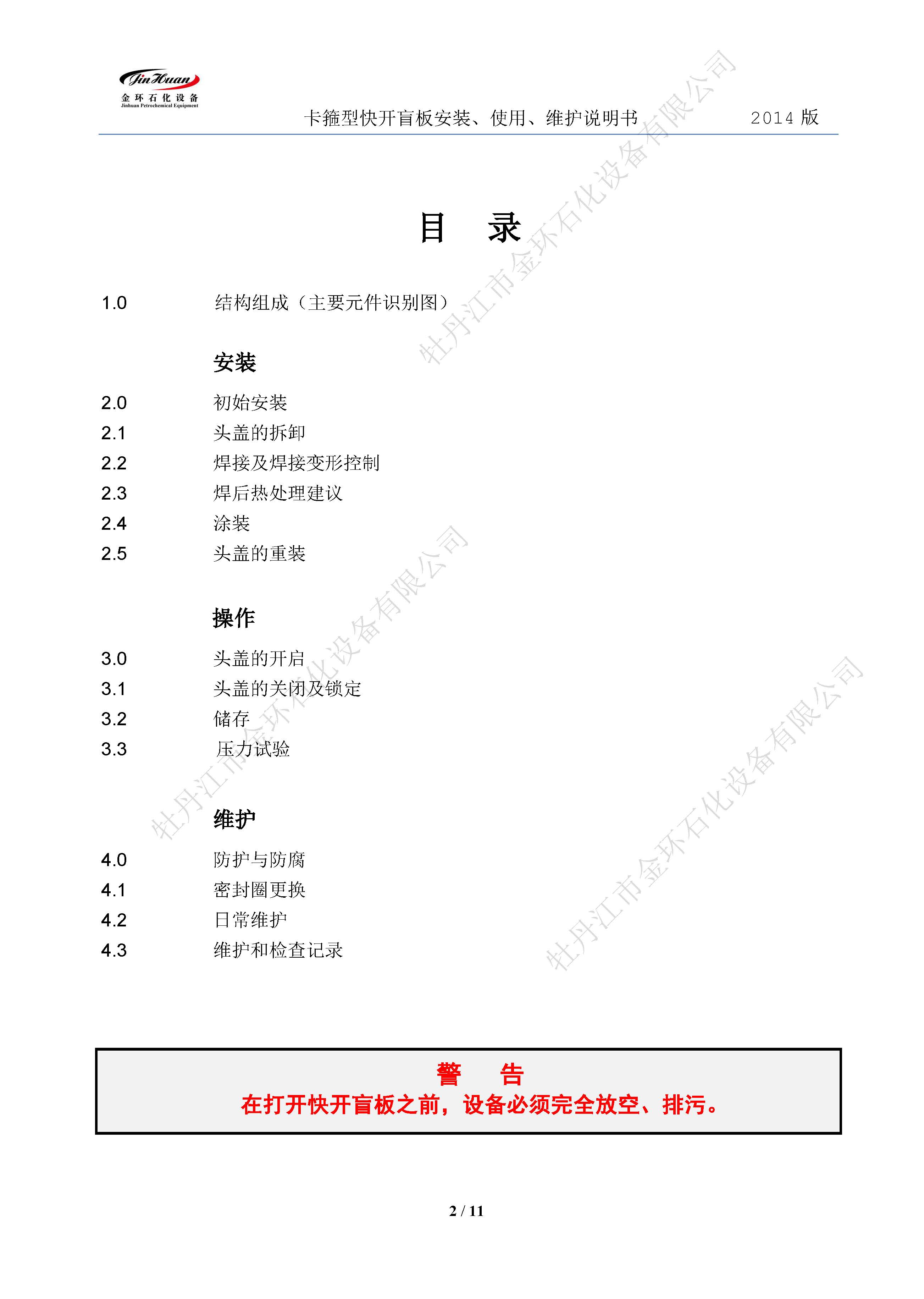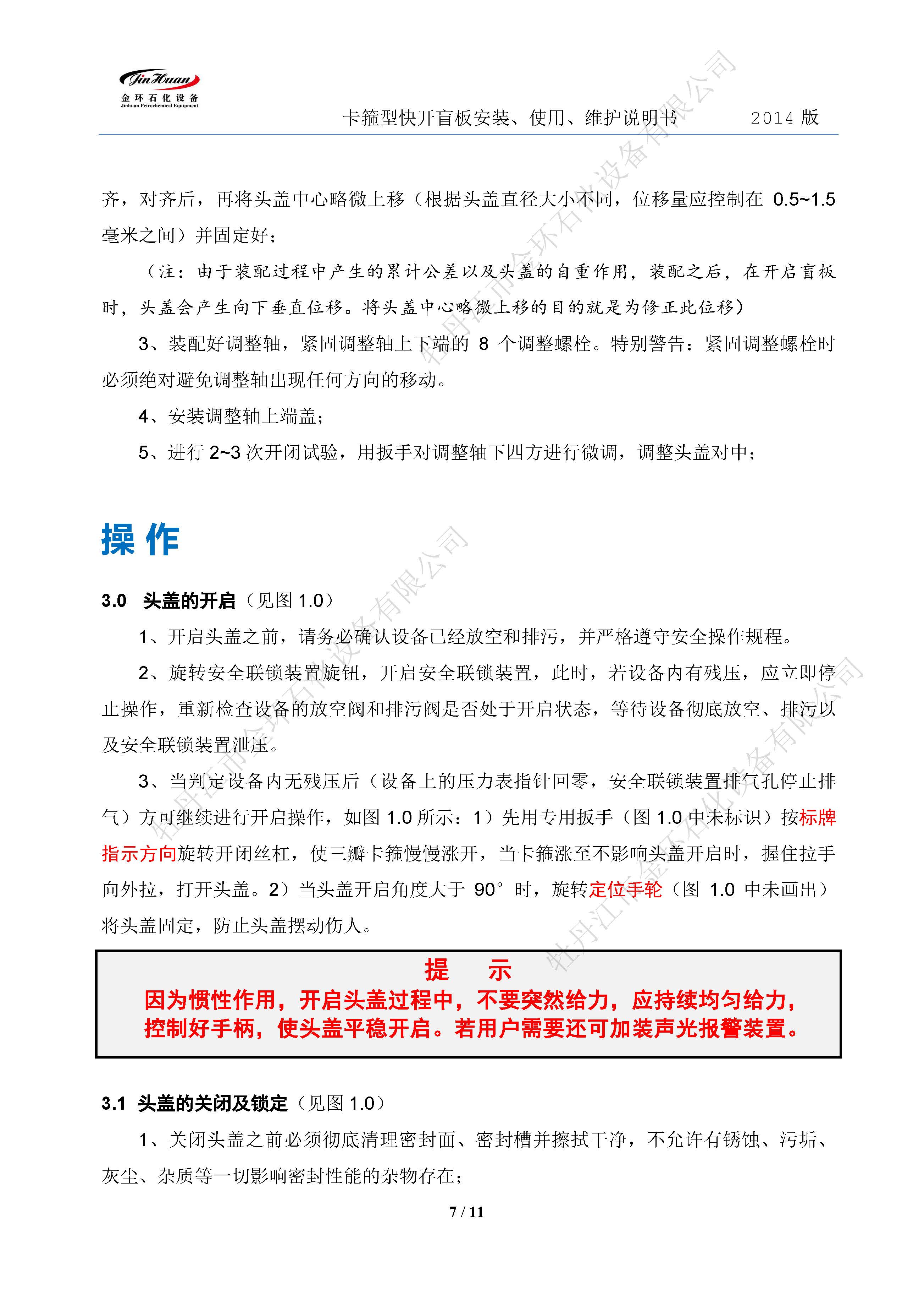 快開(kāi)盲板使用說(shuō)明書
